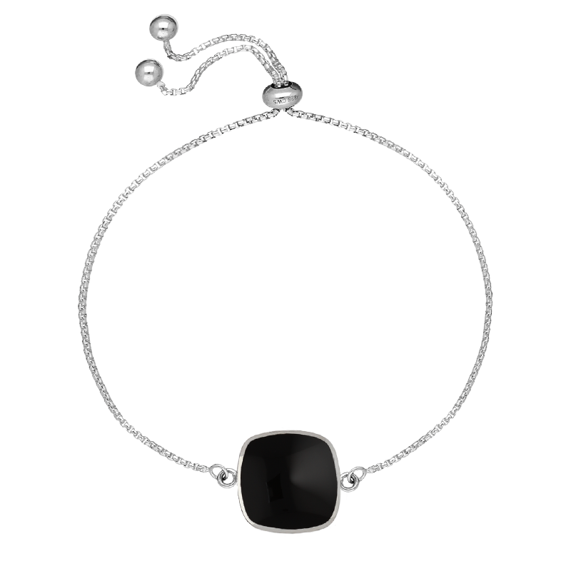 • Sterling Silver Whitby Jet Square Cushion Adjustable Bracelet - B1127 (LNE-294)