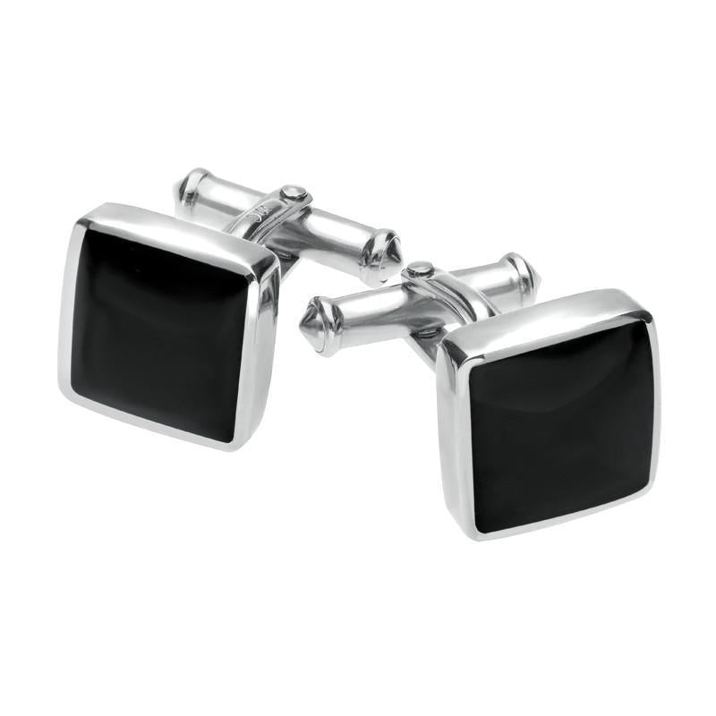 Sterling Silver Whitby Jet Square Cufflinks, CL129.