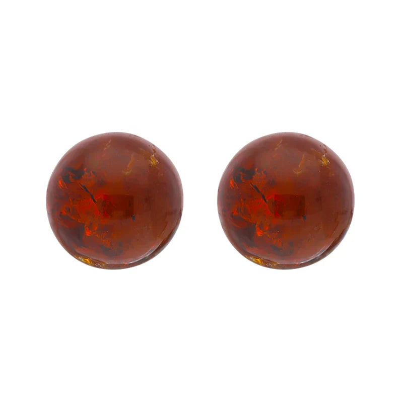 Sterling Silver Red Amber 6mm Ball Stud Earrings