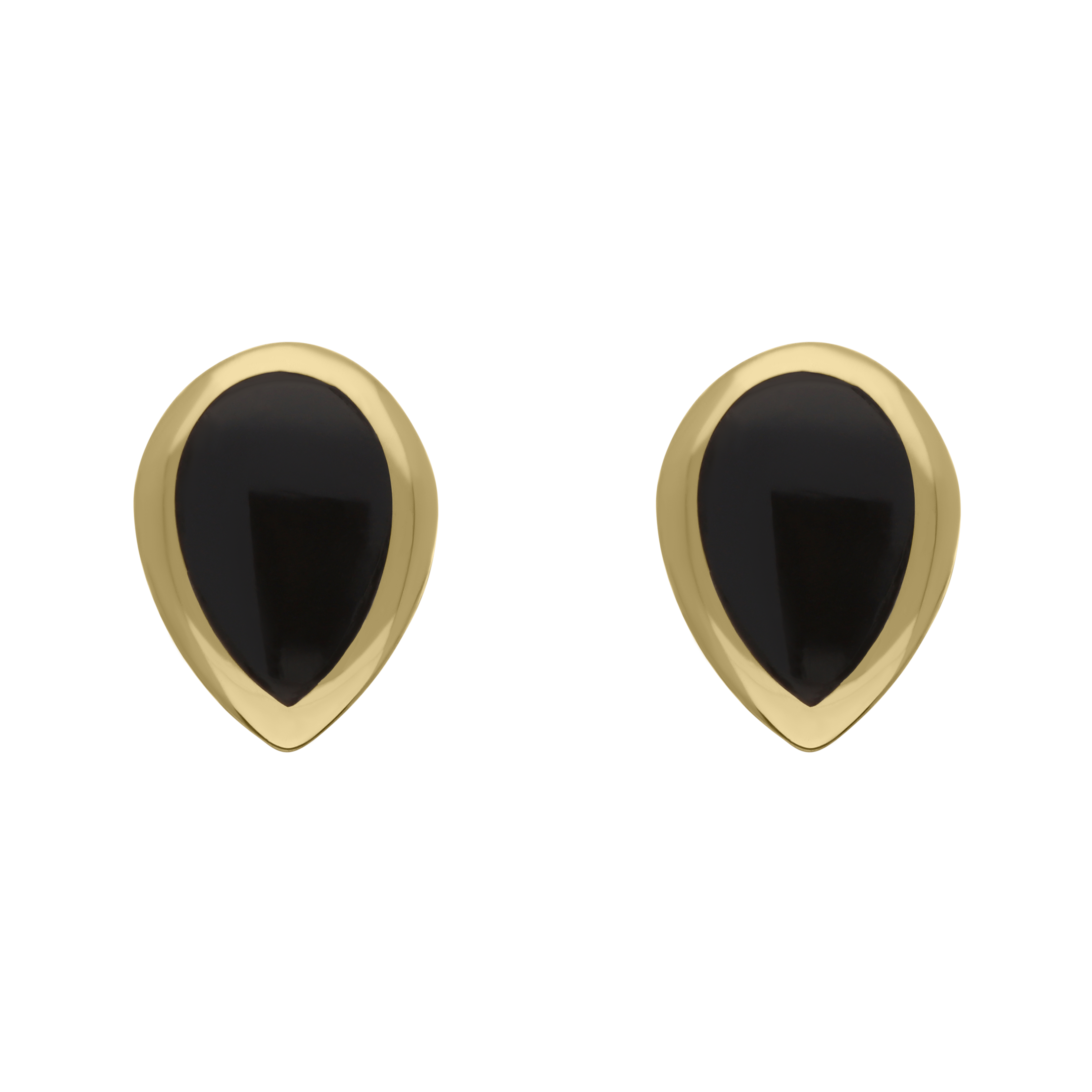 9ct Yellow Gold Sterling Silver Whitby Jet Stepping Stones Pear Stud Earrings E1294