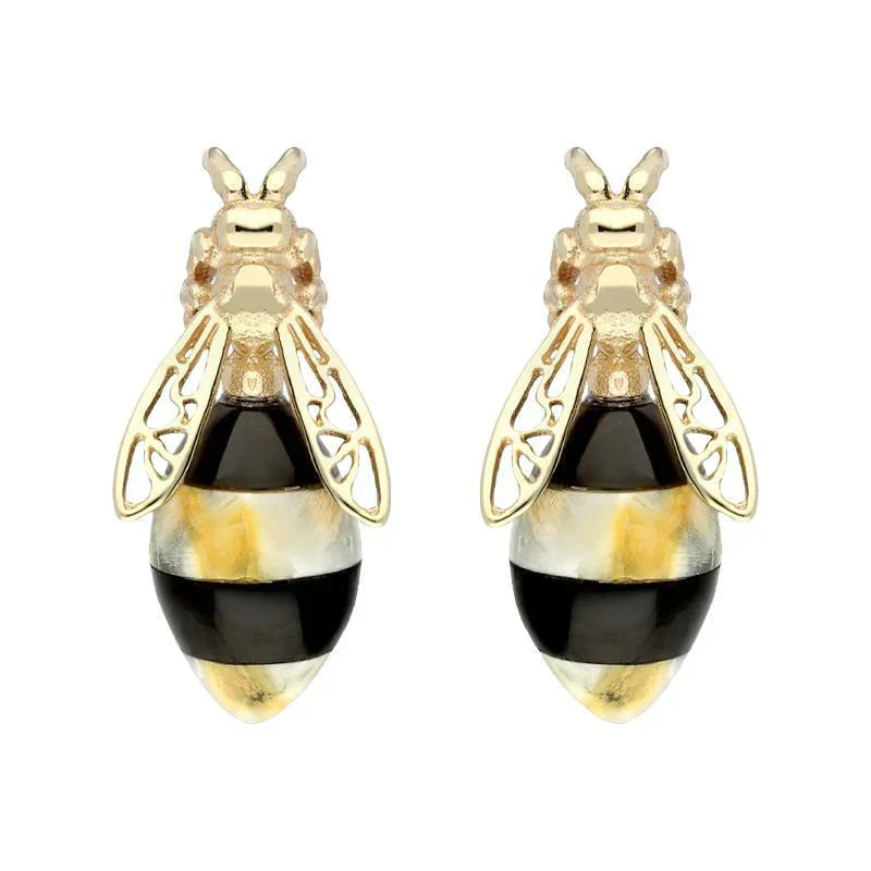 9ct Yellow Gold Whitby Jet Amber Bee Stud Earrings, E2424.