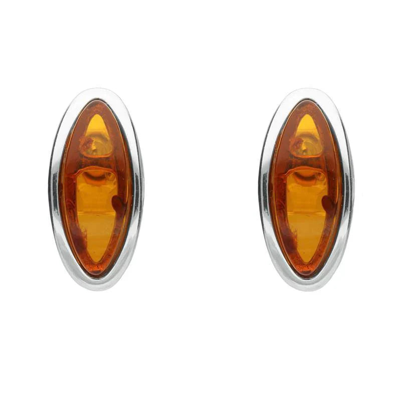 Sterling Silver Amber Round Tapered Edge Marquise Stud Earrings, E2171