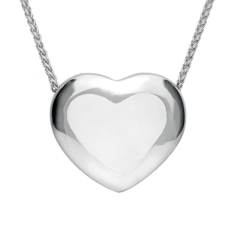This romantic necklace features a beautiful heart shaped cabochon of the finest Bauxite. The gemstone is framed in sterling silver and highly polished for a smooth, contemporary finish. The pendant hangs gracefully from an 18 inch sterling silver chain with a classic bolt ring clasp.