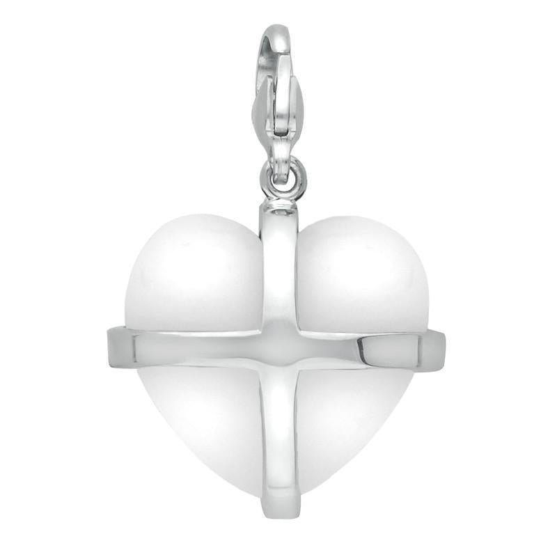 This romantic charm features a stunning heart shaped Bauxite, a rare stone, which has a highly vitreous lustre when polished. The white Bauxite has been framed within a sterling silver mount that embraces the gemstone in a cross design. Attach the beautiful charm using the lobster clasp to fasten to a bracelet or necklace.