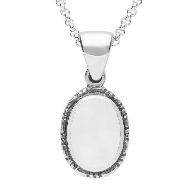 Sterling Silver Bauxite Oval Rope Edge Drop Necklace, P164