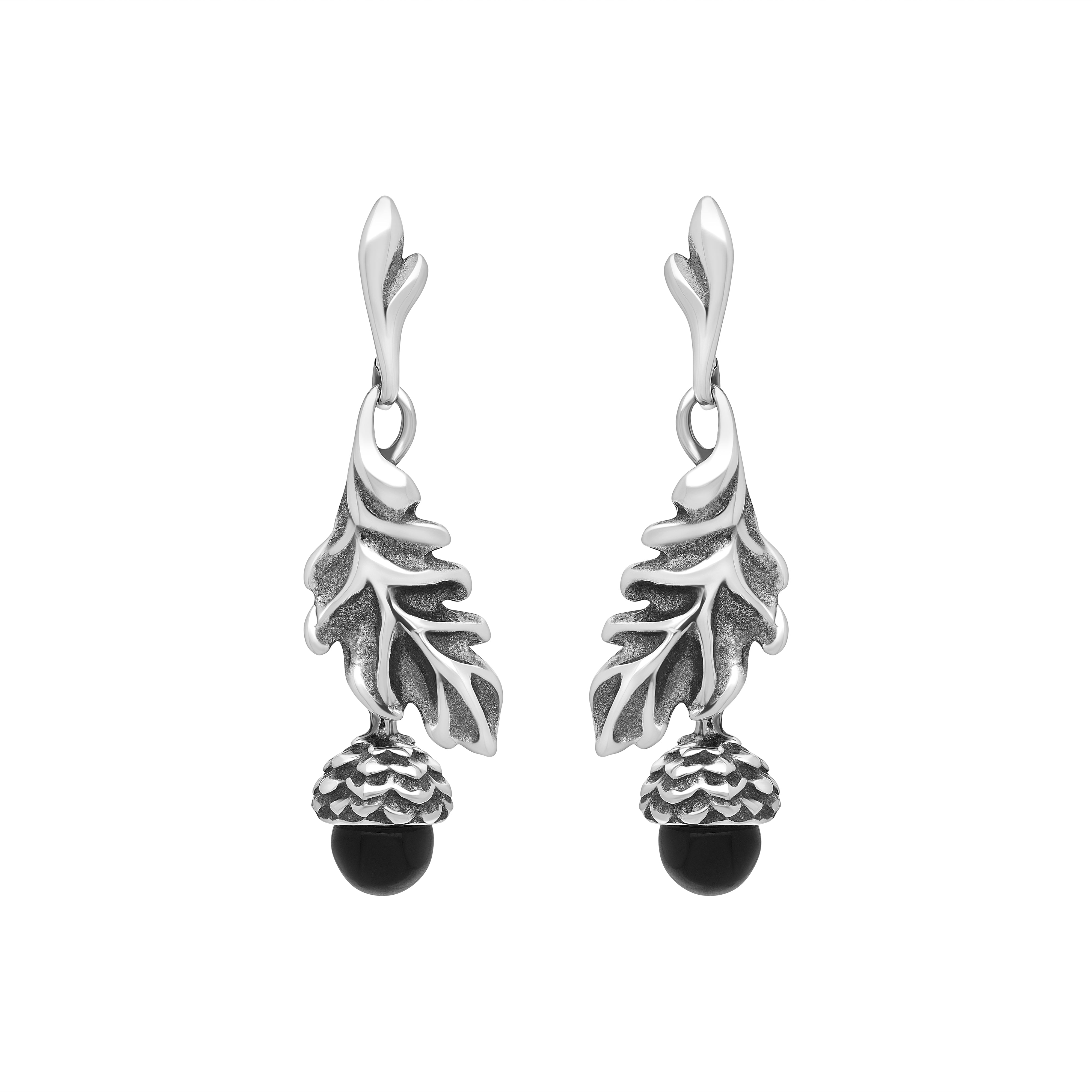 Sterling Silver Whitby Jet Acorn Leaf Drop Earrings, E2617