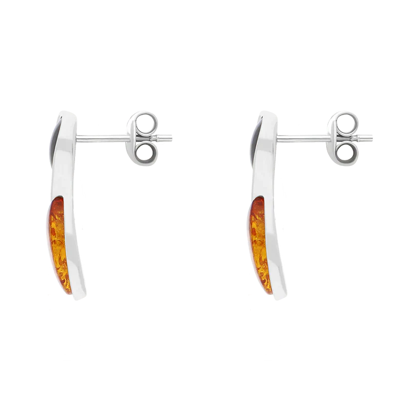 These versatile earrings feature the finest Whitby Jet, sourced directly from the north east coast of Yorkshire, and genuine Amber framed in Sterling Silver. These feminine earrings are perfect for everyday wear and are secured with post and butterfly fitments.