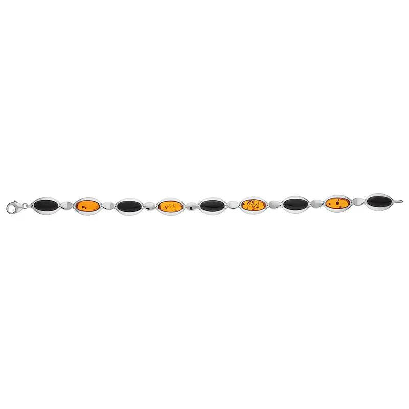 Sterling Silver Whitby Jet Amber Nine Stone Long Oval Bracelet