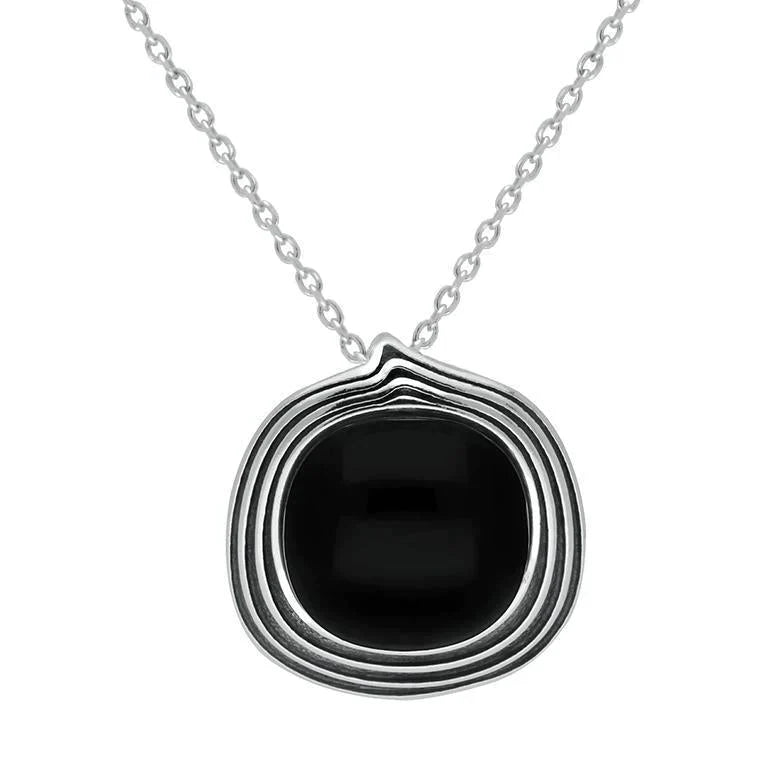 Sterling Silver Whitby Jet Cushion Stone Pattern Edge Necklace
