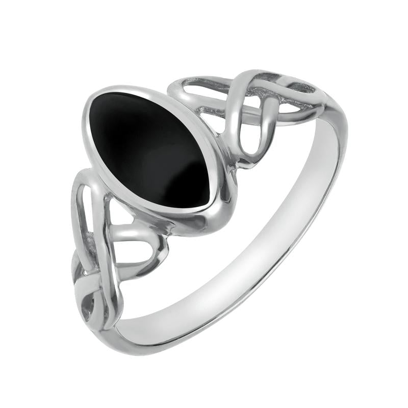 Sterling Silver Whitby Jet Marquise Celtic Ring