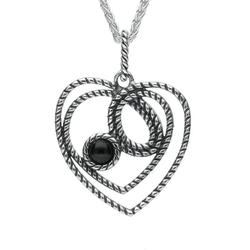 Sterling Silver Whitby Jet Rope Heart Stone Necklace