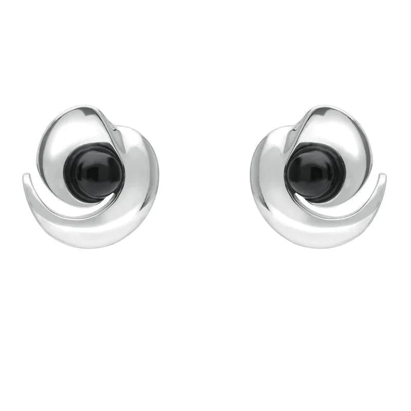 Sterling Silver Whitby Jet Spiral Stud Earrings
