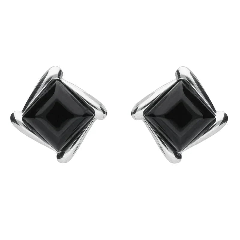 Sterling Silver Whitby Jet Square Wave Stud Earrings