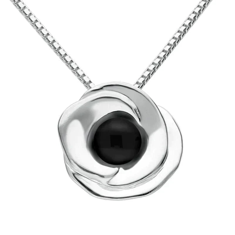 Sterling Silver Whitby Jet Stone Rose Necklace