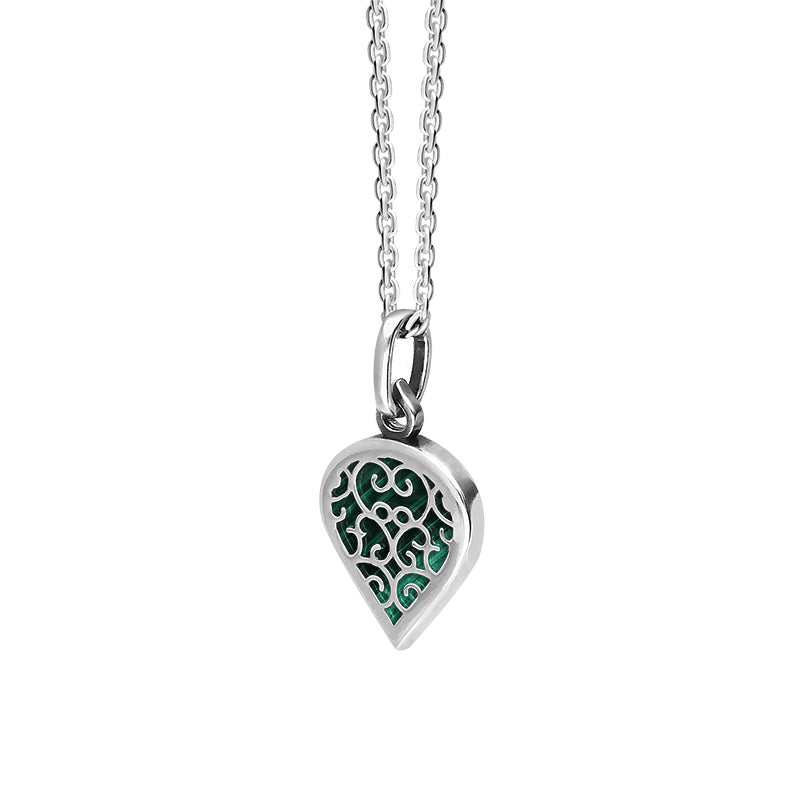 18ct White Gold Malachite Flore Filigree Small Heart Necklace