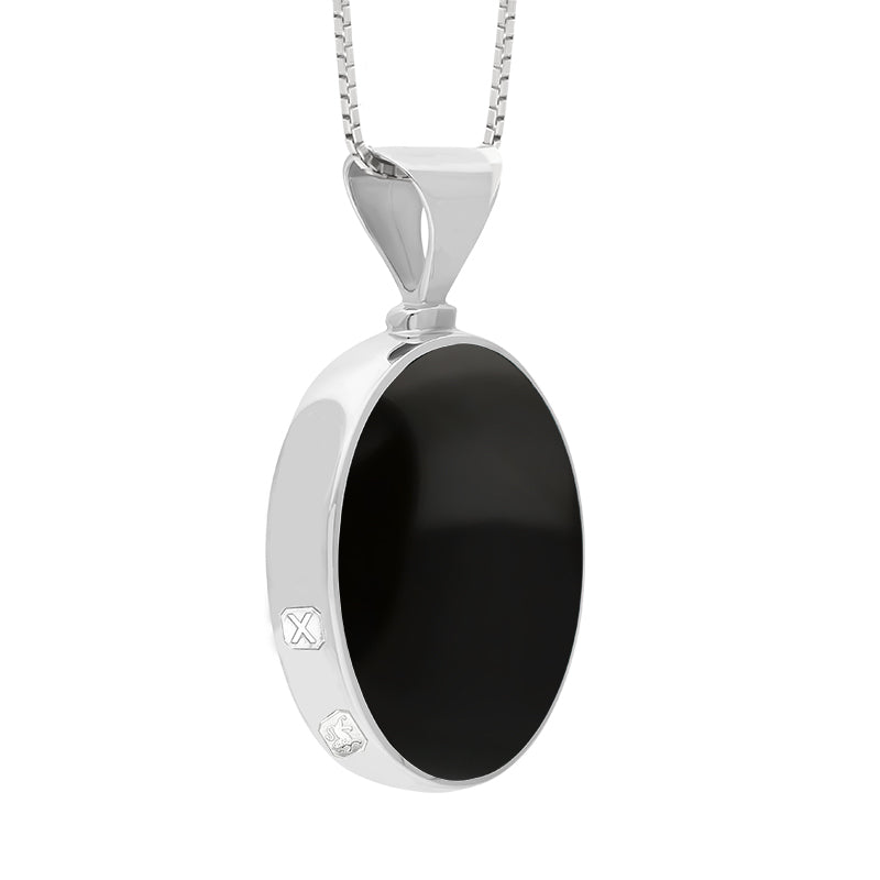 Sterling Silver Whitby Jet Mother of Pearl Hallmark Double Sided Oval Necklace, P147_FH