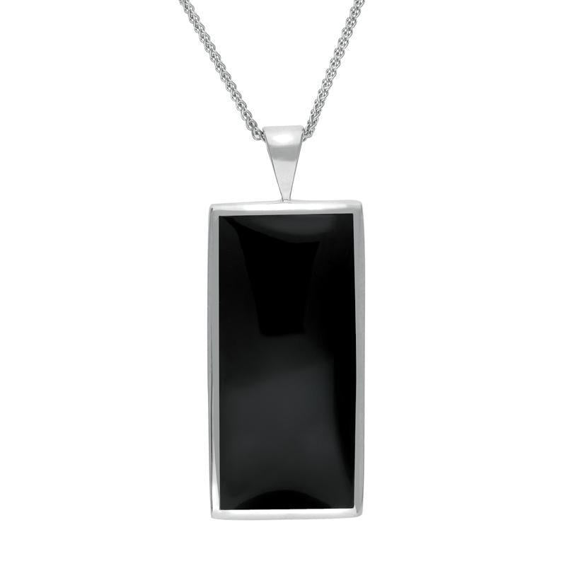 Sterling Silver Whitby Jet Oblong Large Necklace, P078.