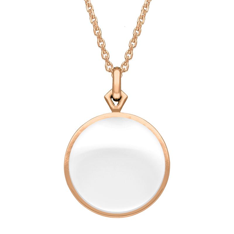 This beautiful necklace is part of Rebecca Sellors' Flore collection. The pendant is double-sided, and features a hand carved and polished cabochon of fine Bauxite stone. The gemstone is set in an intricately crafted 9ct rose gold filigree design. Sold complete with an 18 inch 9ct rose gold chain which fastens with a classic bolt ring style clasp.