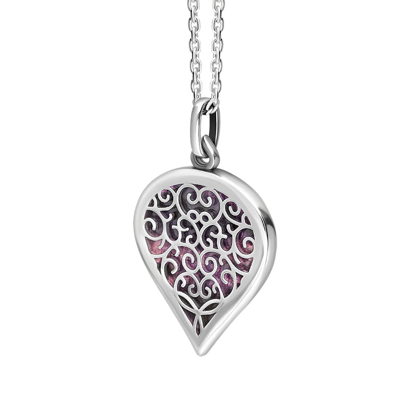 Sterling Silver Blue John Flore Filigree Medium Heart Necklace. P3630.
