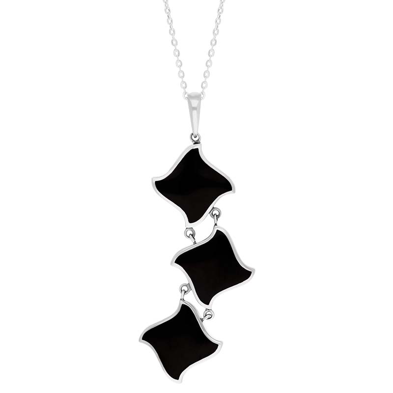 Sterling Silver Whitby Jet Reversible Filigree Triple Square Pendant