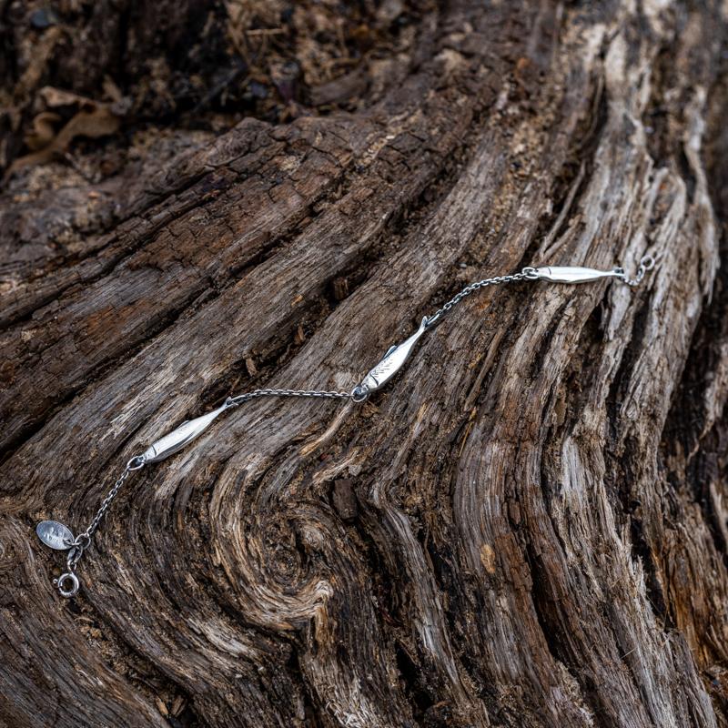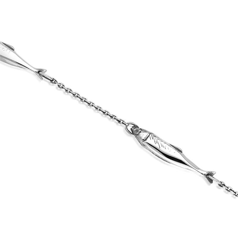 Sterling Silver Emma Stothard Silver Darling Three Fish Chain Link Bracelet