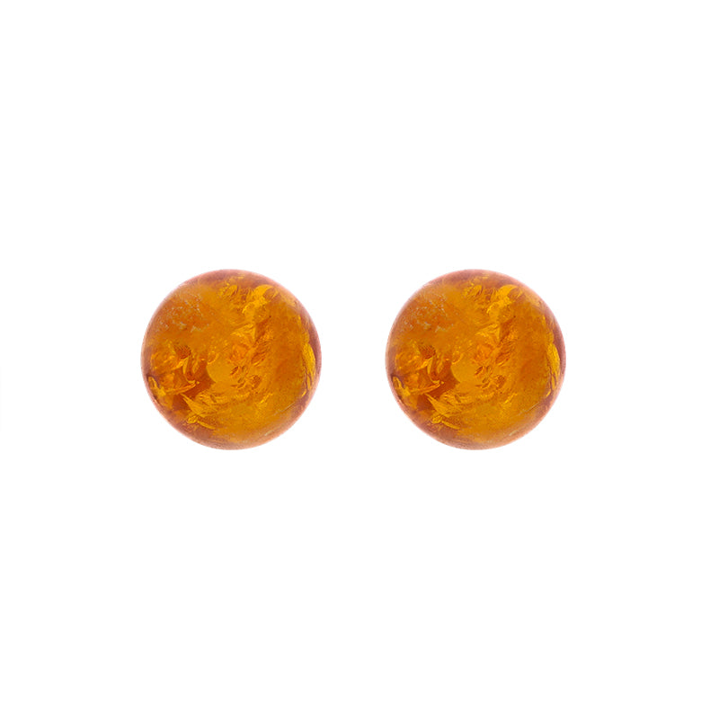 Sterling Silver Cognac Amber 6mm Ball Stud Earrings