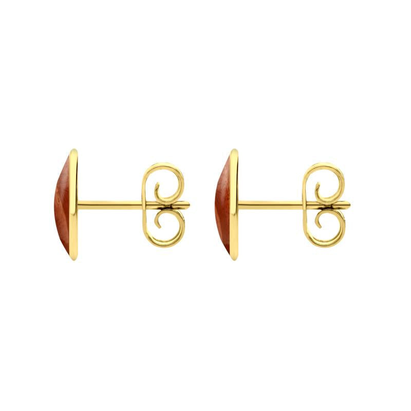 These classic stud earrings feature hand carved Jasper stone. The highly polished stones are set with 9ct yellow gold post and butterfly fittings. Perfect for any occasion and a staple piece for your jewellery box.