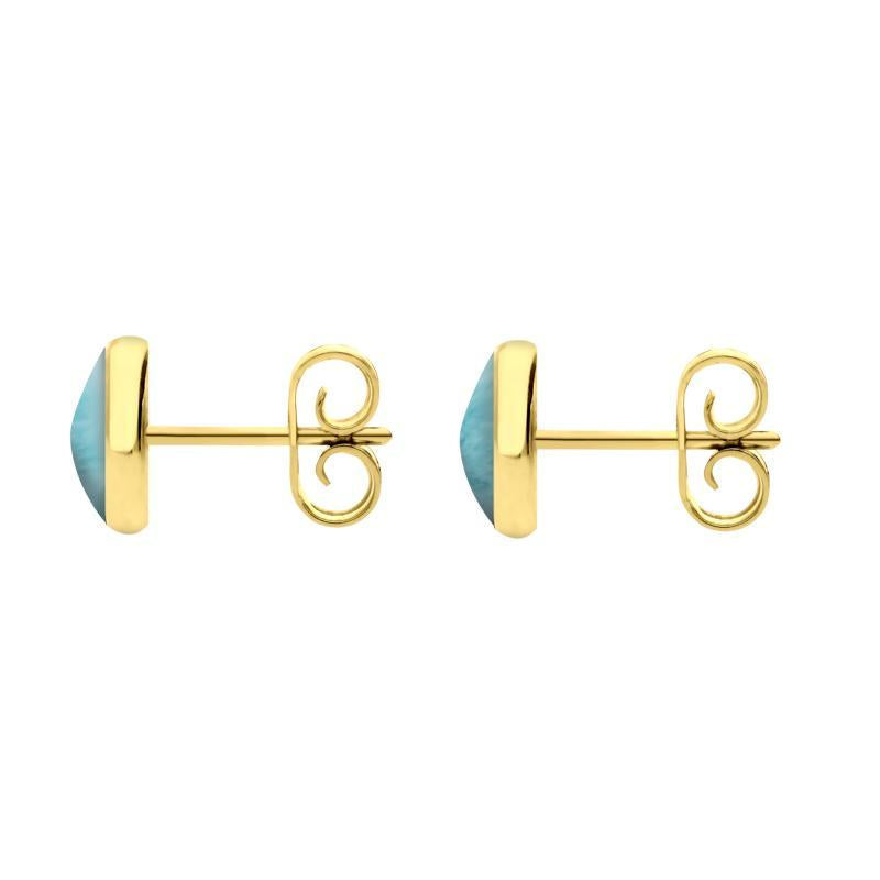 9ct Yellow Gold Larimar 6mm Classic Medium Round Stud Earrings, E003.