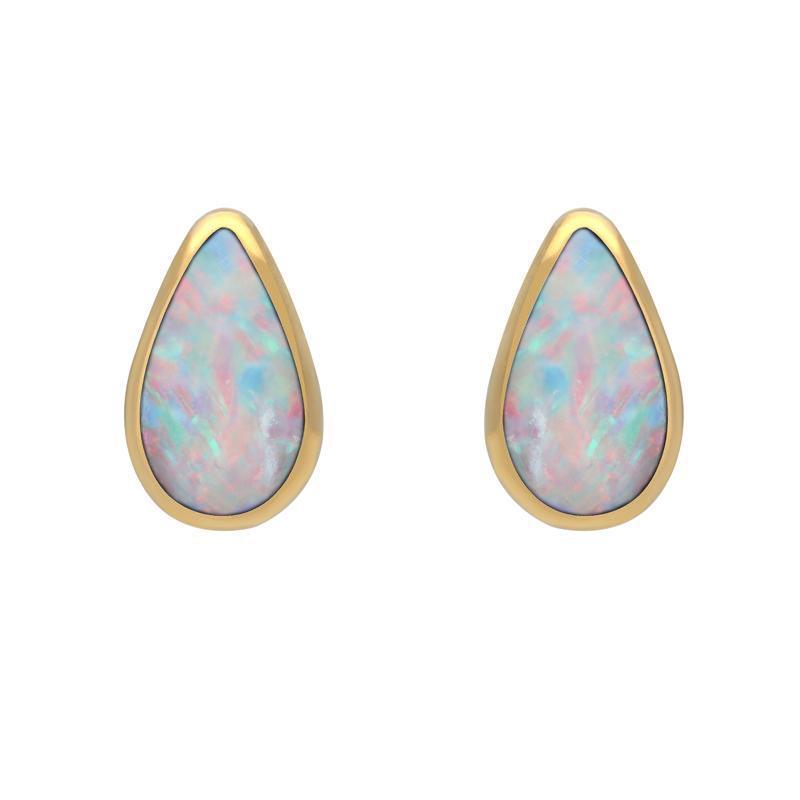 9ct Yellow Gold Opal Small Teardrop Stud Earrings, E225.