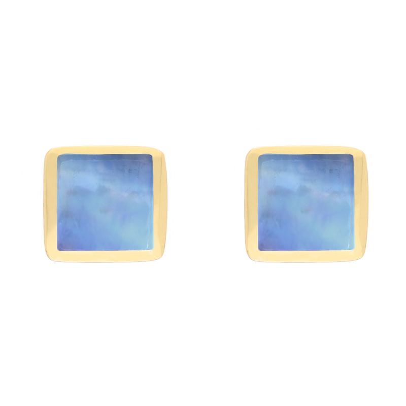 9ct Yellow Gold Sterling Silver Moonstone Stepping Stones Square Stud Earrings E1295