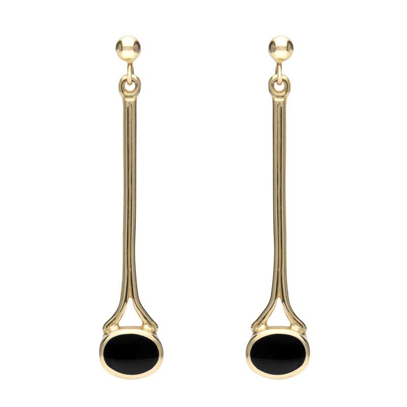 9ct Yellow Gold Whitby Jet Long Drop Earrings