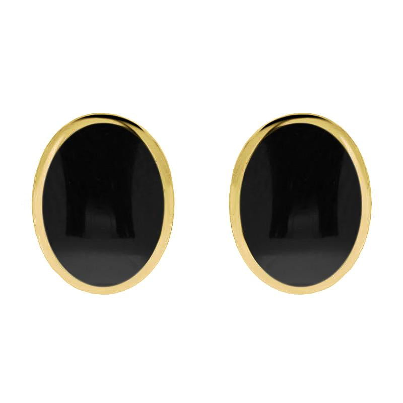 9ct Yellow Gold Whitby Jet Oval Flat Omega Stud Earrings