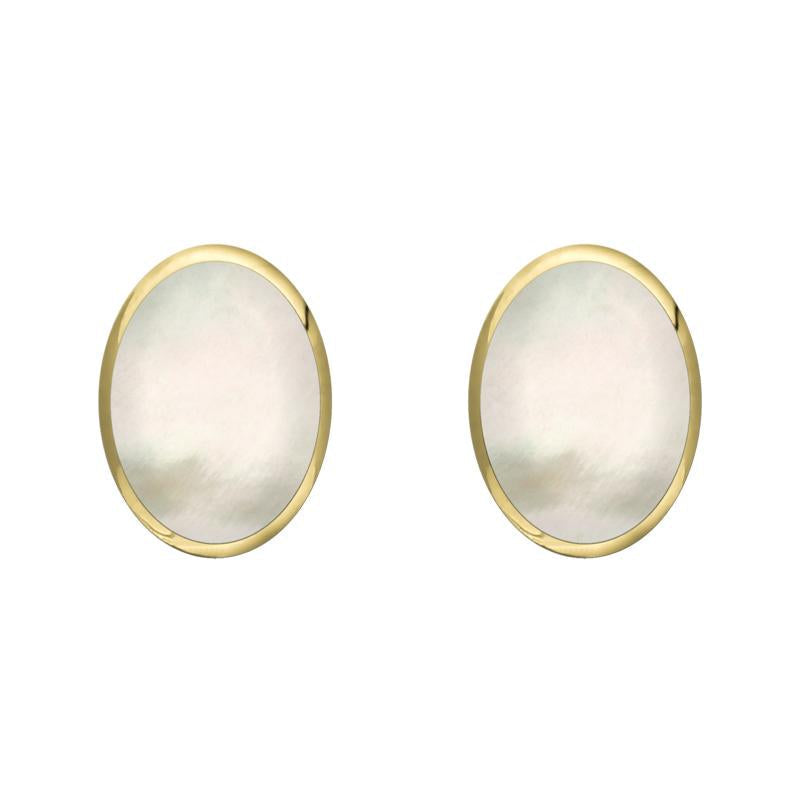 9ct Yellow Gold White Mother of Pearl 8 x 6mm Classic Medium Oval Stud Earrings, E006.