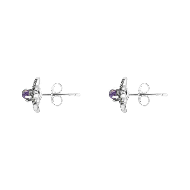 Sterling Silver Blue John Marcasite Flower Stud Earrings
