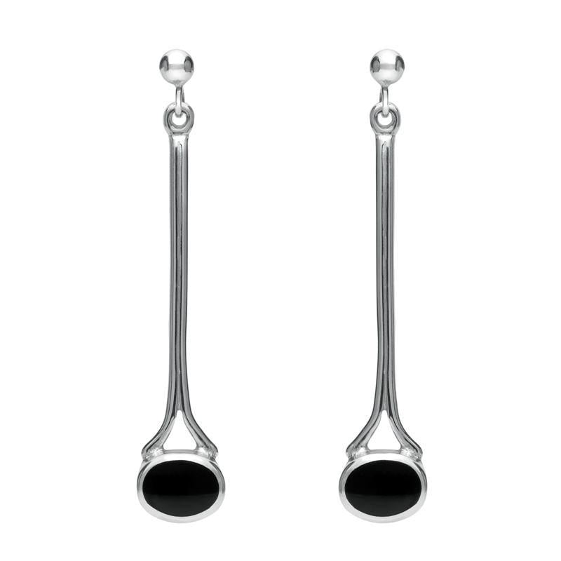 Sterling Silver Whitby Jet Long Drop Earrings, E094.