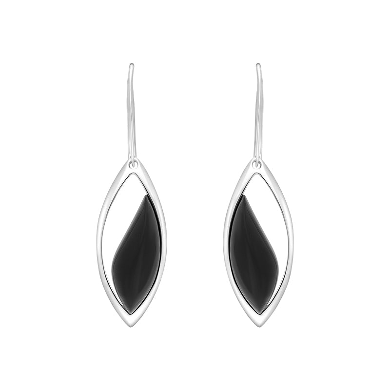 Sterling Silver Whitby Jet Wavy Marquise Open Drop Earrings, E2607
