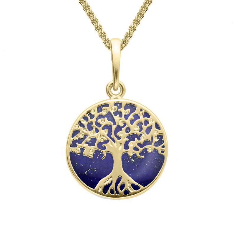 9ct Yellow Gold Lapis Lazuli Small Round Tree Of Life Necklace, P3339.