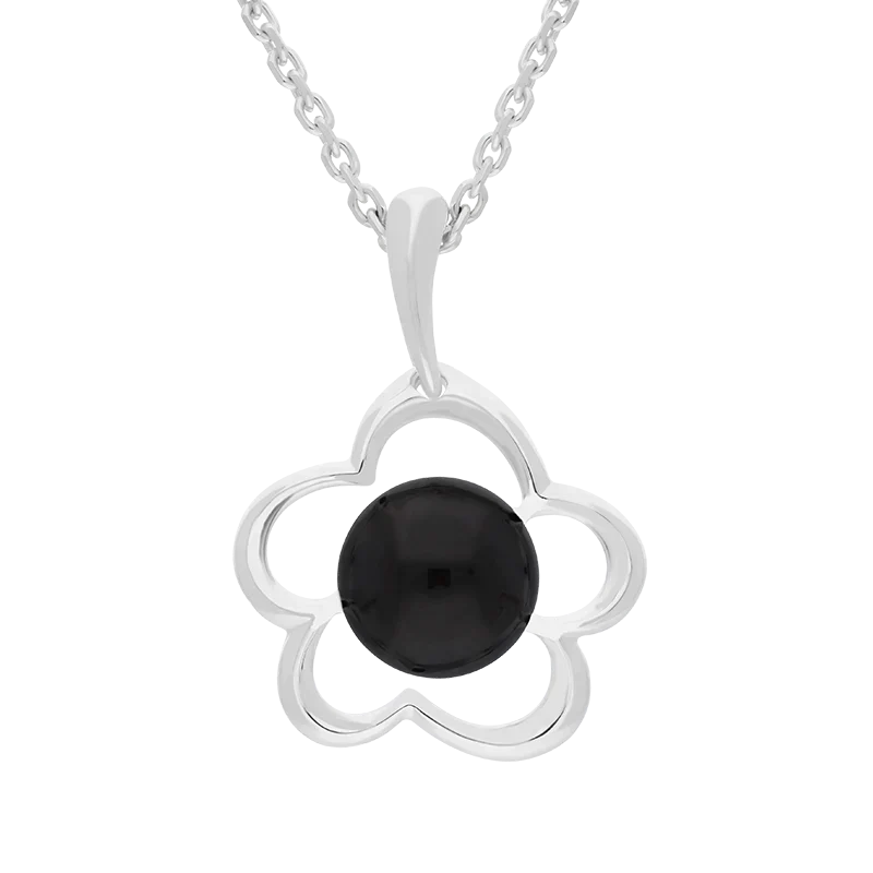 Sterling Silver Whitby Jet Flower Necklace, P1988.