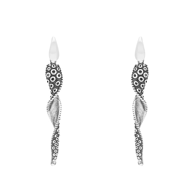 Discover our beautifully crafted Sea Life collection and add to it with these 9ct white gold tentacle drop earrings. Our items make the perfect gift and become treasured memories for years to come. These drop earrings contain a three-dimensional twisted tentacle, featuring 9ct white gold sucker detail. This item comes complete with a 9ct white gold post and butterfly fastening.