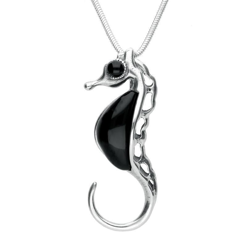 Sterling Silver Whitby Jet Seahorse Necklace, P2316.