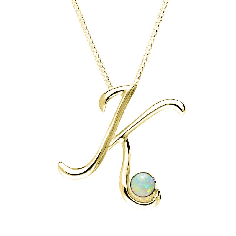 9ct Yellow Gold Opal Love Letters Initial K Necklace, P3458.