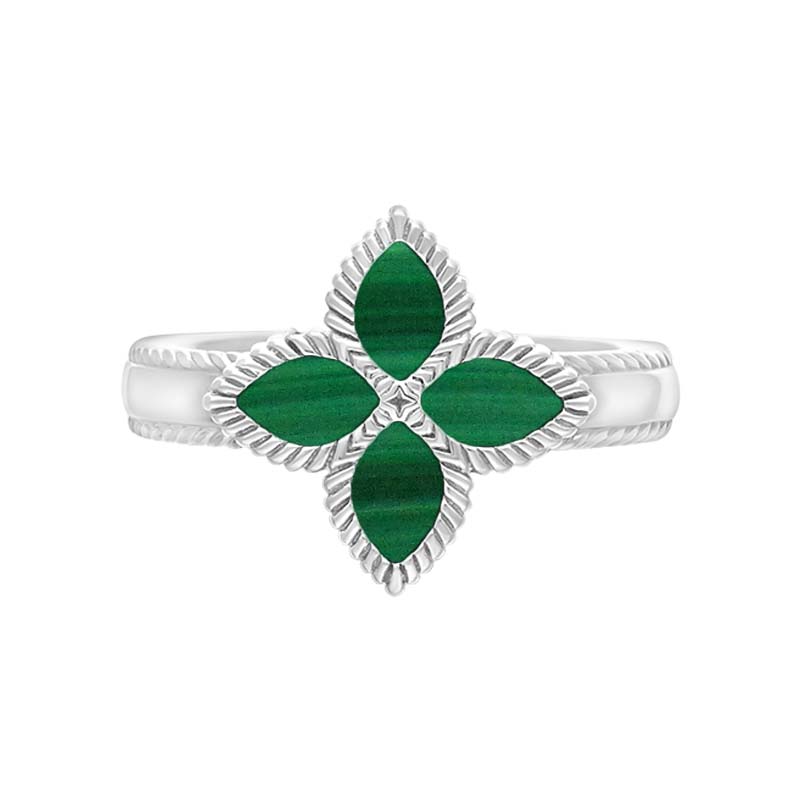 Sterling Silver Malachite Eden Marquise Flower Ring