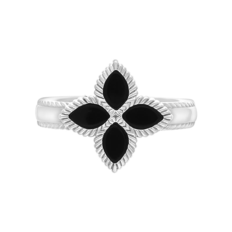 Sterling Silver Whitby Jet Eden Marquise Flower Ring