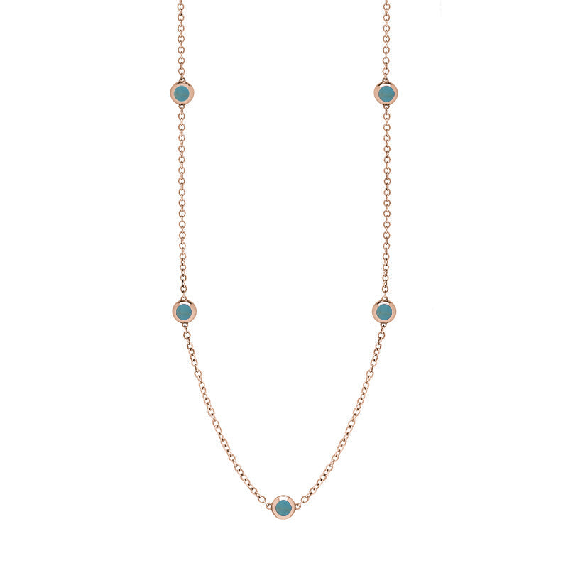 18ct Rose Gold Turquoise Heart Link Disc Chain Necklace