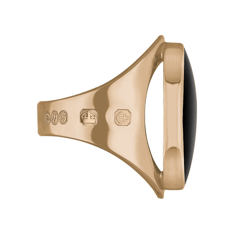 18ct Rose Gold Whitby Jet Hallmark Medium Oval Ring, R012_FH.