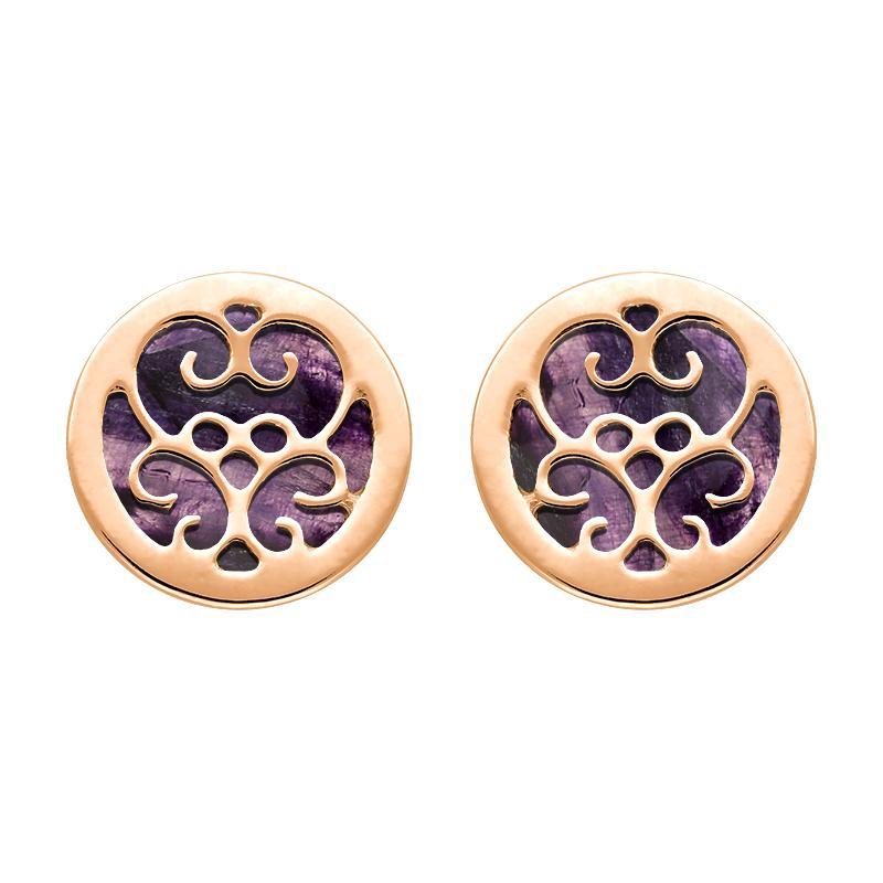 9ct Rose Gold Blue John Flore Filigree Stud Earrings, E1782