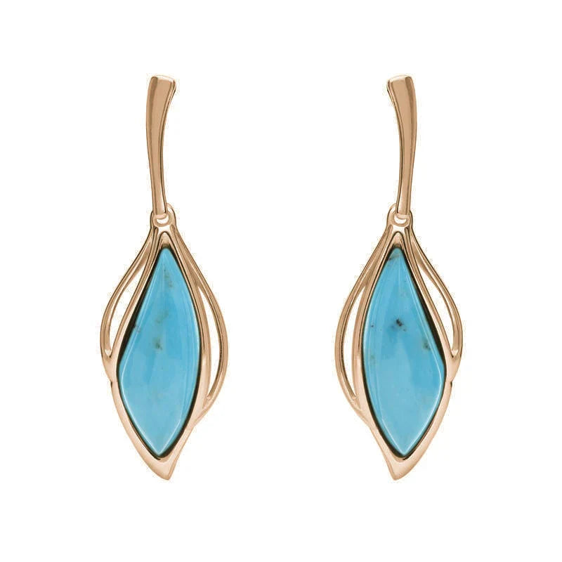 9ct Rose Gold Turquoise Open Marquise Drop Earrings, E2437