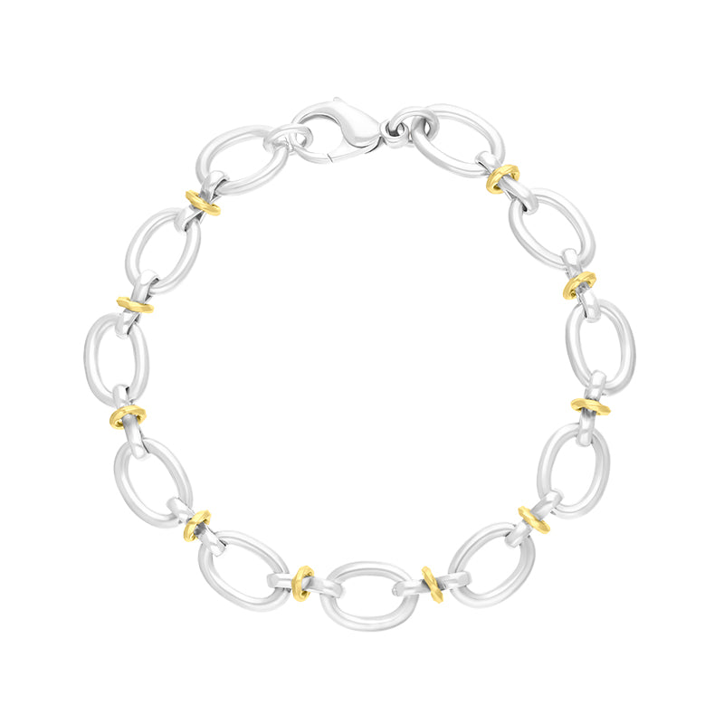 Sterling Silver 9ct Yellow Gold Oval Link Handmade Bracelet C058BR