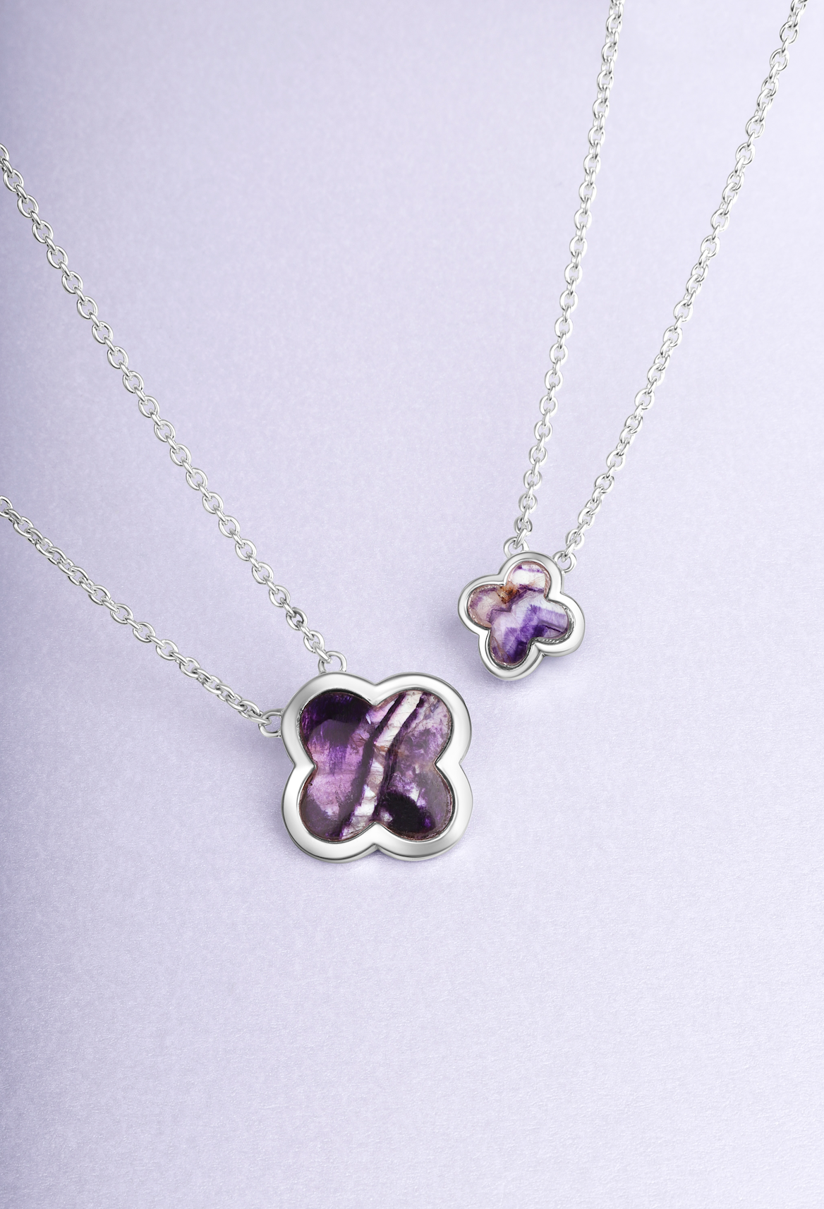 Click here to be notified by when Sterling Silver Blue John Bloom Large Four Leaf Clover Polished Edge Necklace becomes available.
