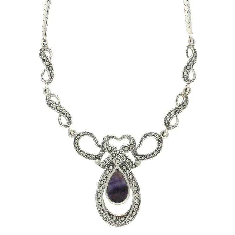 Sterling Silver Blue John Marcasite Drop Bow Twist Necklace